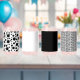 Black Polka Dots, minimal and simple on a white background. This design fits on this printed can glass - set of four. See my store for matching tablecloths, placemats, coasters and more, including a mix-and-match with plain black and white and black and white stripes. If you need any assistance, or if you need a different colour combo - please contact me, I will gladly assist where I can.