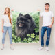 Black Pomeranian Green Shamrock Field Fleece Blanket