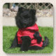 Black Pomeranian Puppy Looking at Camera Coaster