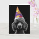 It's a special delivery with this card cover featuring a black poodle wearing a party hat. Available in greeting and note card sizes. Personalize the inside text, remove the text or edit using the design tool to select a font style size and color you like.