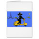 My painting of a cute little black poodle riding a bright yellow vespa scooter and the Eiffel tower in the background.