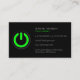 Cool Modern, Black, Technology Professional, Business Card - with Green Light Power Button / On Off Switch.