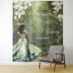 Personalize this enchanting Sweet 16 birthday welcome sign / back drop tapestry easily and quickly. Simply click the Edit Using Design Tools button to further edit the text, change font styles and font colors. Featuring a black girl dressed in a sage green dress, a frog prince, beautiful trailing white floral and an enchanted forest and pond background. The girl, crown, little butterflies and frog are movable, resizable, multipliable and removable. Customize it to suit your occasion. For a seamless and coordinated look, explore our range of matching items available in-store. (c) Somerset Fine Paperie.