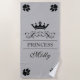 Black crown silhouette with dog paw silhouettes in each corner and text that reads "princess" together with a personalizable text area for a name. The background colour is grey.
