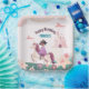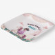 The design is infused with soft pastel pinks, creating a serene and whimsical backdrop that appeals to the gentle and playful spirit of kids. Surrounding the central figures, delicate floral motifs add an elegant touch, enhancing the plate's charm and connecting it to the beauty of nature. The watercolor technique lends an ethereal quality, making each element appear soft and magical, as if plucked from the pages of a storybook.