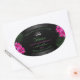 Make a lasting impression with this elegant and exotic product label design featuring lovely pink hawaiian flowers and green palm leaves on a black background. A cool palm leaf shadow matching to the shimmery border frame.