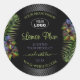Make a lasting impression with this elegant and exotic product label design featuring shimmery purple hawaiian flowers and yellow palm leaves on a black background. A cool palm leaf shadow matching to the shimmery border frame.