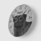 Black Pug Cartoon Dog Head Close-Up And Name Grey Round Clock