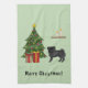 Black Pug Cute Cartoon Dog With A Christmas Tree Tea Towel
