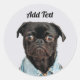 Pug Life. Cute black pug dog photo image. He's wearing a jean jacket which makes him look a bit gangster and tough. "Add Text" ready for you to add any text or personalise it with your name.