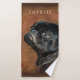 Black Pug Dog Portrait.A gorgeous and handsome black Pug Dog digital oil painting portrait. Wearing a striped shirt and giving a side gaze/whale eye, with a dark grunge brown background. Rich neutral, earth-toned colors with a rustic and distressed look. Pugs have a remarkable and charming personality, despite its small size. Ready to be personalized, just add your name.