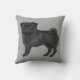 Black Pug Dog Cute Cartoon Illustration Grey Cushion