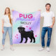"PUG PRINCESS" PERSONALIZED DOG OR CHILDS NAME PASTEL FLEECE BLANKET.