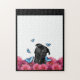Black Pug With Blue Butterflies And Gerberas Jigsaw Puzzle