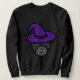 Black Pug with Purple Witch Hat and Spider Friend Sweatshirt
