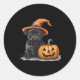 Black Pug With Witch Hat And Pumpkin Halloween Pug Classic Round Sticker
