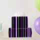 Wrapping paper with stripes in black, purple, and white. Perfect colours to wrap any gift.
