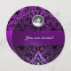 BLACK & PURPLE DAMASK GEM STONE MONOGRAM INVITATION
