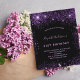A girly and feminine 21st (or any age) birthday party invitation. On front: A chic black background. Decorated with dark purple faux glitter dust. Personalise and add a name and party details. The name is written with a hand lettered style script, light purple coloured letters.