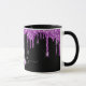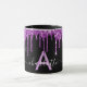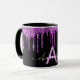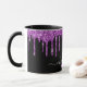 Black purple glitter drips monogram name script mug