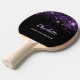 An elegant black background. Decorated with purple faux glitter dust. Personalise and add your first name, monogram initials and full name. The name is written with a hand lettered style script.