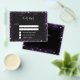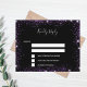 A trendy black background, decorated with sparkling purple faux glitter dust. Personalise and add the reply by date and your names.