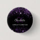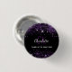 An elegant black background. Decorated with purple faux glitter dust. Personalise and add your first name, monogram initials and full name. The name is written with a hand lettered style script.