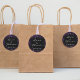 The sticker is made on wonderful paper and had no problem sticking to the bag that I purchased to put it on. I wanted to find a design that would be cute for the bride and groom and this one fit the bill as it has cute "bees" buzzing around and the wedding was taking place in a town called "Bee Cave". The packaging was great and protected the stickers. The website is easy to navigate and there are so many color choices. I had no problem finding a color that the bride was using on everything else selected. The design was adorable and there were many to choose from. You can make the figure as larger or smaller and you can place the photo and writting whereever you want to in the sticker. The printing is fabulous..better than expected.
