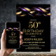 Invite your friends and loved ones to your 50th birthday with this modern birthday party invitation. The customisable text area in this invitation template allows you to effortlessly include all the necessary details for your special birthday celebration, including the date, time, venue, and RSVP information. A variety of paper types and corner styles are available for your unique invitations, along with the option to download if you prefer a digital format.