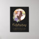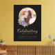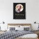 Elegant personalised black, purple and gold floral photo funeral welcome sign featuring a gold photo frame adorned with purple roses.