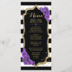 Menu Card. Classy black white purple design with faux glitter gold. Features stripes, script font and purple roses. Perfect for an elegant party.