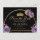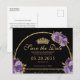 Black Purple Plum Gold Glitter Floral Quinceanera Postcard