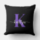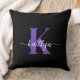 This simple, elegant black 20 inch throw pillow with your first name in a trendy script font in white and your first initial in a modern cap font in purple is perfect for you. It's stylish and trendy and yet very classic. It will look fabulous in your bedroom, living room, viewing room, she shed.