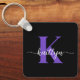 This modern black keychain with your first name in a trendy script font in white and your first initial in a modern cap font in purple is perfect for your keys. It's stylish and trendy and yet very classic.