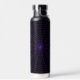 Black purple spider web Halloween pattern Water Bottle. Drinkware with Spooky Halloween cobweb gothic design and custom black background.