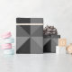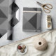 This wrapping paper has a geometric design of triangles that form squares that look like a bird's eye view of pyramids.