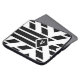 Striking black and white geometric pattern features black quadrilaterals aligned in stripes. The parallelograms angle towards a black diamond outlined with white in the upper third of the image. The diamond contains a customisable monogram. Three bold black stripes extend from the bottom of the diamond to the base of the vertical design.