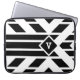 Black Quadrilateral Stripes on White with Monogram Laptop Sleeve