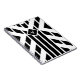 Striking black and white geometric pattern features black quadrilaterals aligned in stripes. The parallelograms angle towards a black diamond outlined with white in the upper third of the image. The diamond contains a customisable monogram. Three bold black stripes extend from the bottom of the diamond to the base of the vertical design.