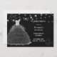 Surprise all your guests with this magical, black evening, princess gown design for the sweet fifteen honoree. Diamond glitz, overlay, and swirling glitter motifs on the dress, and two more motifs in upper left and lower right corners, under white string lights on midnight black background.