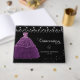 Collect your guest's name and messages in this beautiful purple and black design, with string lights at top front and photo on back. Princess gown in pink with pink sparkly glitter. Script Quinceañera text with name and date, swirly motif, and glitter at lower right.