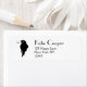 Drawing of a black crow with plump feathers and a large white beak. Seems to be smiling about something.