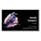 Magnetic business card with an image of a black crow with purple pink wings. A pink watercolor splatter behind this lovely mystical bird.