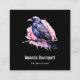 Business cards with an image of a black crow with purple pink wings. A pink watercolor splatter behind this lovely mystical bird.