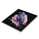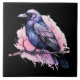 Ceramic tile with an image of a black crow with purple pink wings. A pink watercolor splatter behind this lovely mystical bird.