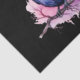 Tissue paper with an image of a black crow with purple pink wings. A pink watercolor splatter behind this lovely mystical bird.