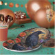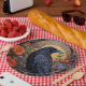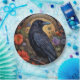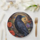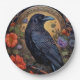 Paper plates with a black crow perched on a branch surrounded by red flowers. Cool gothic vibe.