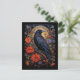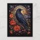 Postcard with a black crow perched on a branch surrounded by red flowers. Cool gothic vibe.