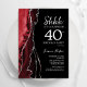 Black red and white agate surprise 40th birthday party invitation. Elegant modern design featuring watercolor agate marble geode background, faux glitter silver and typography script font. Trendy invite card perfect for a stylish women's bday celebration. Printed Zazzle invitations or instant download digital printable template.