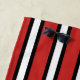 Trendy beach towel with vertical stripes in red, white and black.